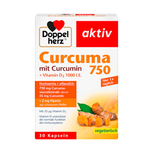 کپسول کورکوما ۷۵۰+ D3 دوپل هرز-Doppel herz آلمان ۳۰ عدد
