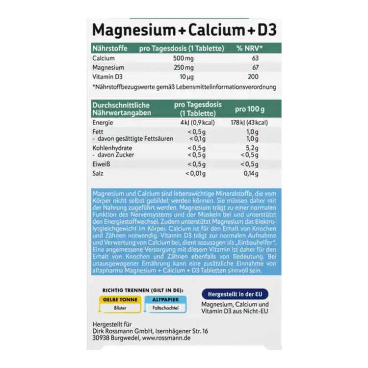 قرص منیزیم+کلسیم+D3 آلتافارما-altapharma آلمان ۴۵ عدد