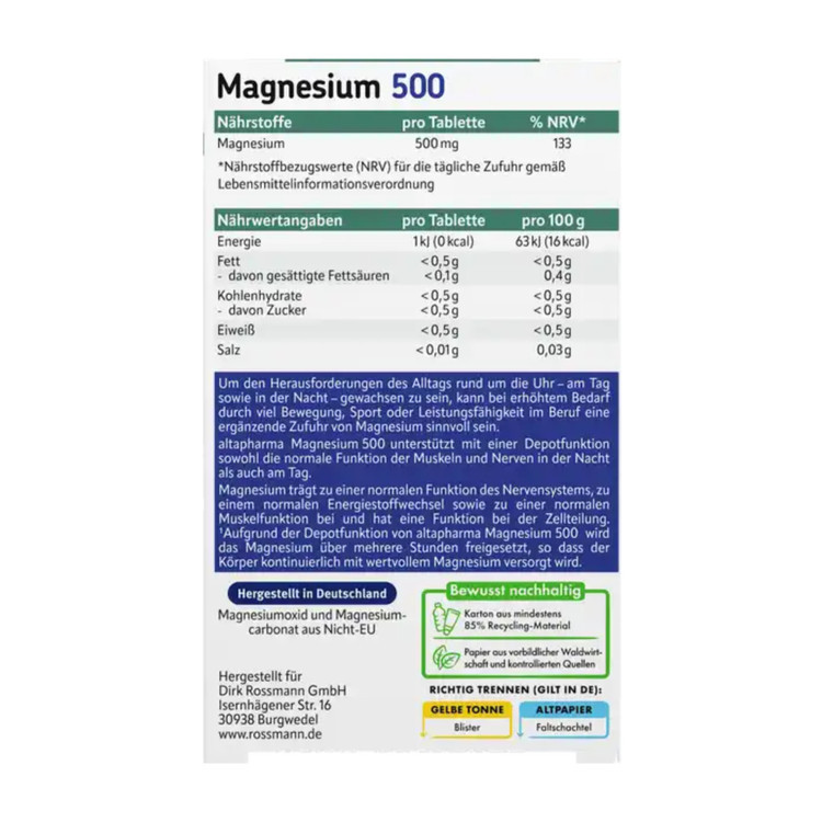 قرص منیزیم ۵۰۰ آلتافارما-altapharma آلمان ۳۰ عدد