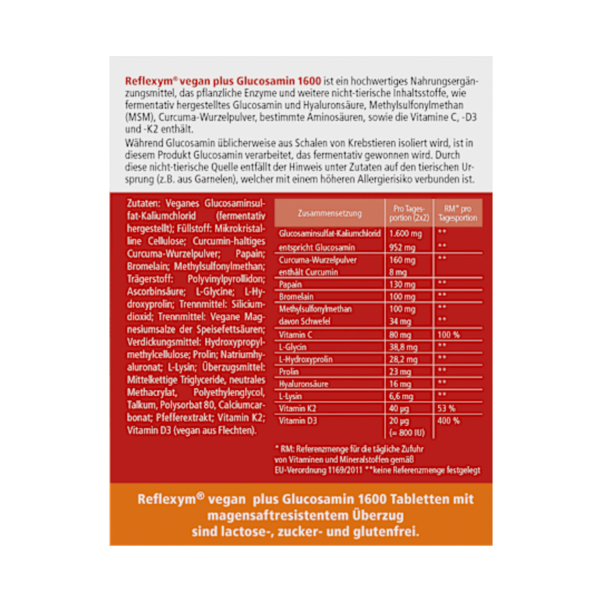 قرصهای Reflexym vegan plus Glucosamine 1600 از برند Madaus & Lauscher بسیار کوچک هستند و بنابراین بلعیدن آنها آسان است. این مکمل غذایی علاوه بر مخلوط آنزیم، حاوی منگنز نیز میباشد که میتواند به تشکیل طبیعی بافت همبند کمک کند. این محصول برای ارسال سریع یا خرید از فروشگاههای ما موجود است.