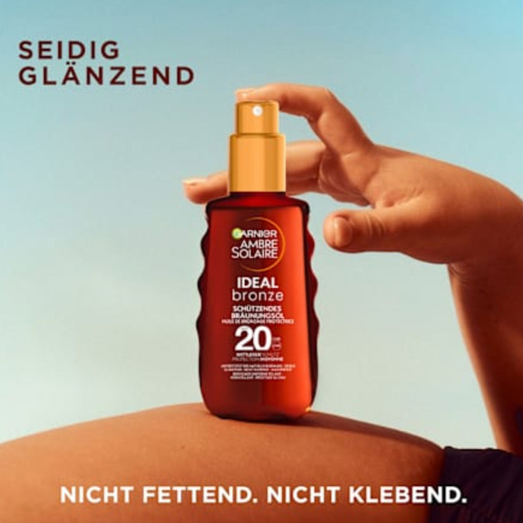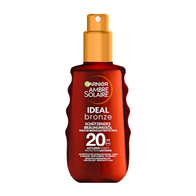 روغن ضد آفتاب گارنیه مدل Ambre Solaire Ideal Bronze Protective با SPF 20، محافظت متوسط و پایدار در برابر اشعههای UVA و UVB با طیف وسیع در برابر آفتاب سوختگی و پیری پوست ناشی از آفتاب را فراهم میکند. علاوه بر این، استفاده از روغن ضد آفتاب به شما کمک میکند تا سریعتر از کرمهای ضد آفتاب معمولی برنزه شوید. این اسپری ضد آفتاب علاوه بر ایجاد برنزه مطلوب، پوست را نیز مرطوب میکند. فرمول حاوی کره شی باتر از خشکی جلوگیری میکند، خاصیت ارتجاعی را بهبود میبخشد و نرمی را افزایش میدهد. این روغن ضد آفتاب مقاوم در برابر آب، درخشش ابریشمی ایجاد میکند و بدون ایجاد چسبندگی یا چربی، به سرعت جذب پوست میشود.