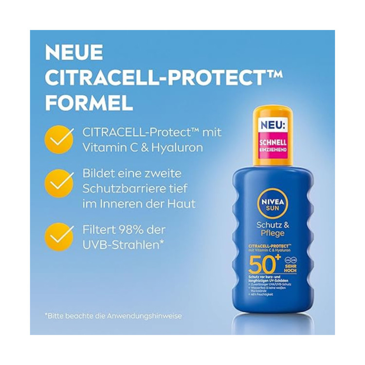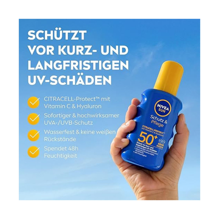 اسپری ضد آفتاب کاربردی نیوآ سان از پوست شما محافظت و مراقبت میکند. این اسپری ضد آب با SPF 50+ محافظت فوری در برابر آفتاب سوختگی و اشعه ماوراء بنفش ارائه میدهد. فرمول مغذی آن رطوبت زیادی را فراهم میکند و با علائم پیری پوست ناشی از آفتاب مقابله میکند. این کرم ضد آفتاب همچنین حاوی سیستم محافظت بسیار مؤثر در برابر UVA و UVB است. با نیوآ سان، میتوانید برنامه روزانه خود را با سهولت شروع کنید.