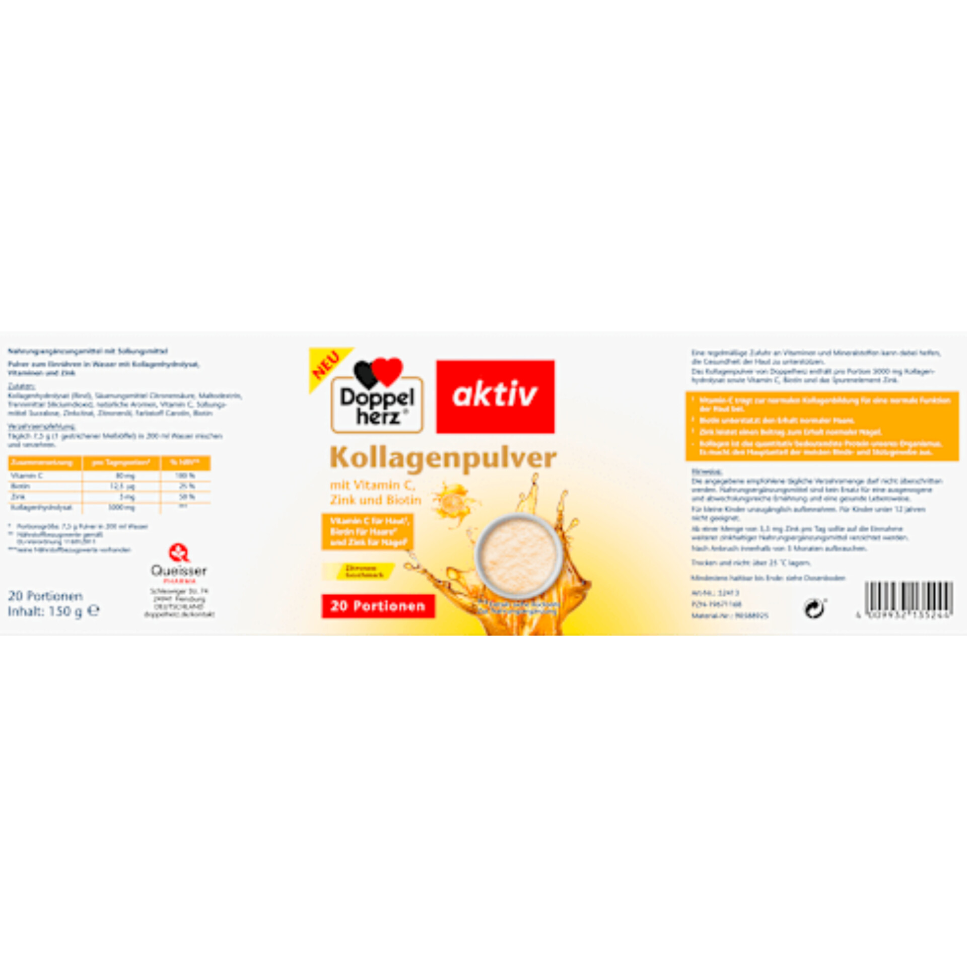 پودر کلاژن لیمویی دوپلهرتز، پودری است که با آب مخلوط میشود و طعم لیموی دلچسبی دارد. هر وعده روزانه ۵۰۰۰ میلیگرم کلاژن هیدرولیز شده به همراه ترکیبی از ویتامین C، بیوتین و روی را فراهم میکند. ویتامین C میتواند به تشکیل طبیعی کلاژن کمک کند، در حالی که بیوتین میتواند از حفظ موهای طبیعی پشتیبانی کند. این پودر کلاژن برای تکمیل یک رژیم غذایی متعادل ایدهآل است و میتواند به حفظ سلامت پوست و مو کمک کند.