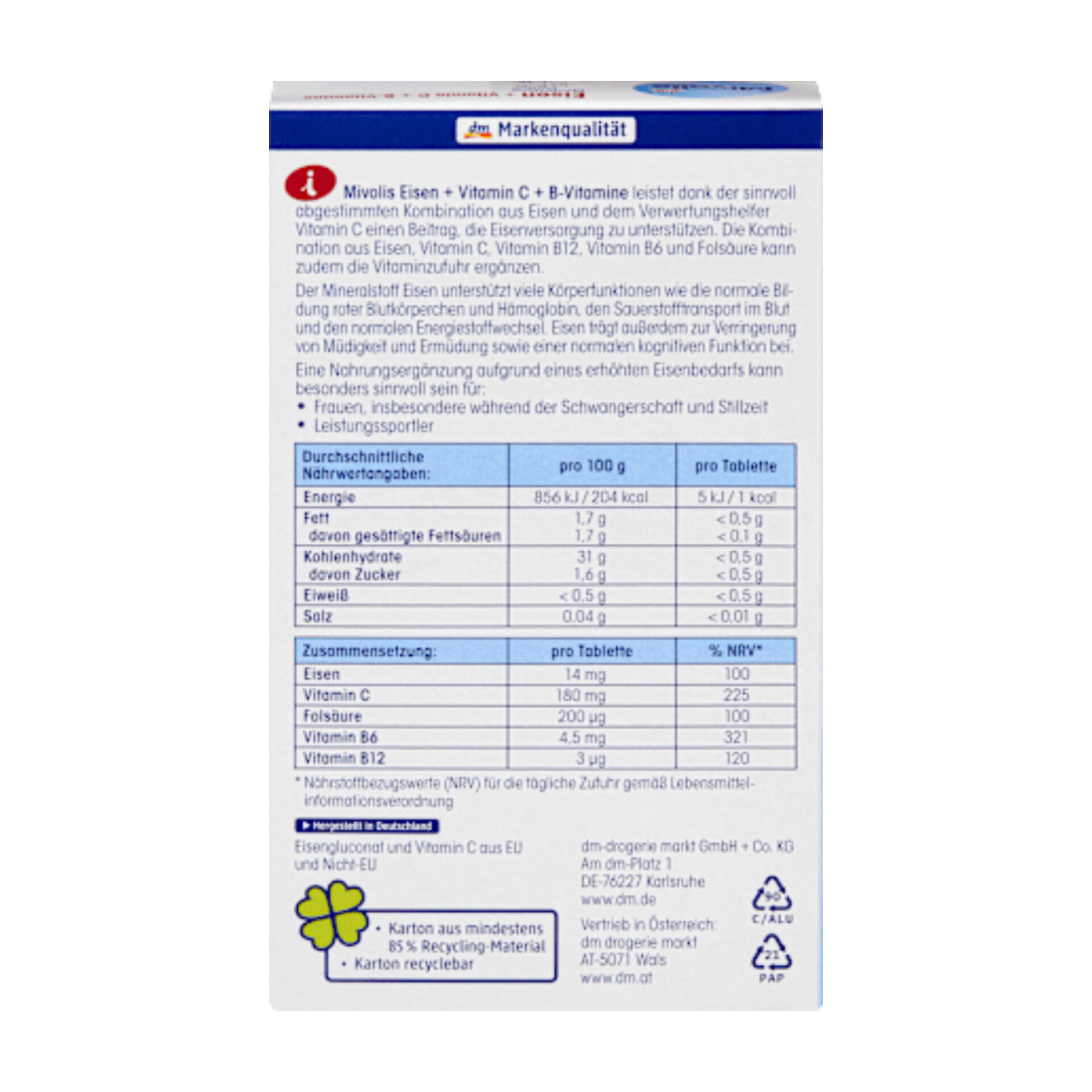 قرص آهن+ ویتامین C+B میولیس-Mivolis آلمان ۴۰ عدد