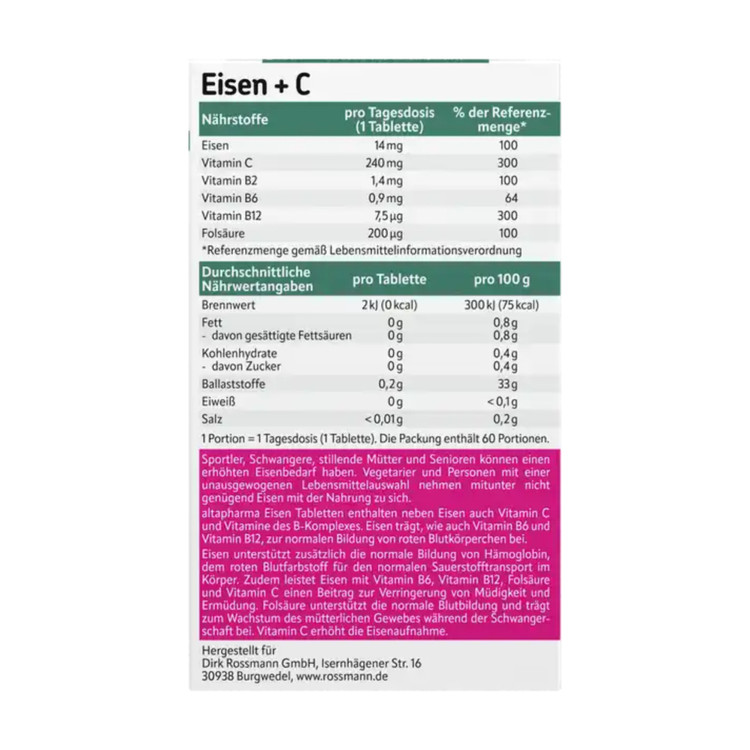 ورزشکاران، زنان باردار، مادران شیرده و سالمندان ممکن است نیاز بیشتری به آهن داشته باشند. گیاهخواران و افرادی که رژیم غذایی نامتعادلی دارند، گاهی اوقات به اندازه کافی آهن مصرف نمیکنند. قرصهای آهن آلتافارما نه تنها حاوی آهن هستند، بلکه ویتامین C و ویتامینهای گروه B را نیز دارند که برای متابولیسم آهن و خون مهم هستند. آهن در تشکیل طبیعی هموگلوبین، رنگدانه قرمز خون، نقش دارد و بنابراین انتقال طبیعی اکسیژن را تضمین میکند. آهن همچنین میتواند در کاهش خستگی و کوفتگی نقش داشته باشد. علاوه بر این، در تقسیم سلولی نیز نقش دارد. ویتامین C جذب آهن را افزایش میدهد. ویتامینهای B6، B12 و اسید فولیک در تشکیل طبیعی گلبولهای قرمز خون نقش دارند. ویتامین B2 همچنین از متابولیسم طبیعی آهن پشتیبانی میکند و همراه با آهن، ویتامینهای B6، B12 و C به کاهش خستگی و کوفتگی کمک میکند و در نتیجه عملکرد را بهبود میبخشد.