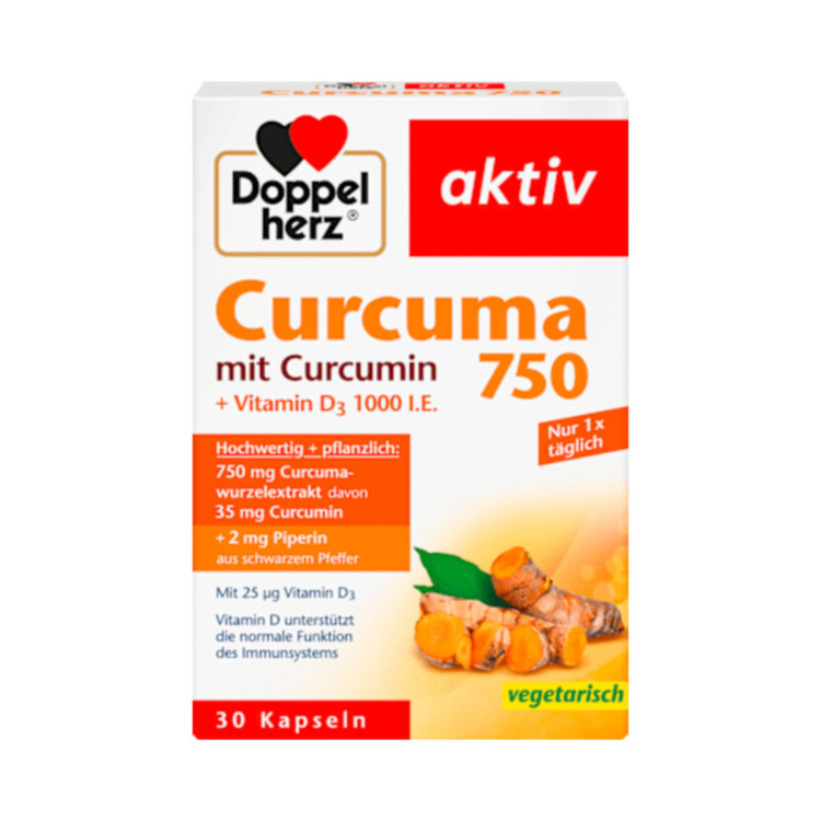 کپسول کورکوما ۷۵۰+ D3 دوپل هرز-Doppel herz آلمان ۳۰ عدد