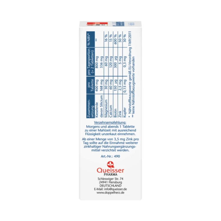قرصهای دوپلهرز حاوی ۸۰۰ میلیگرم سیلیس و ۳۰۰ میکروگرم بیوتین در هر دوز روزانه هستند.