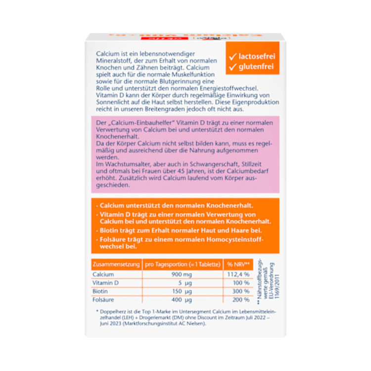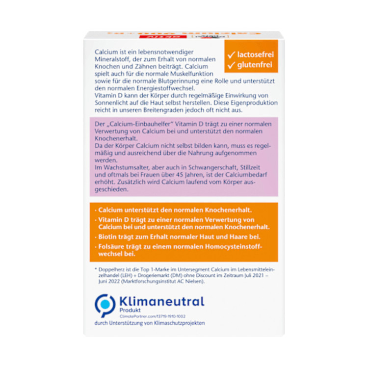 قرصهای کلسیم D3 900 دوپلهرتز، با محتوای کلسیم 900 میلیگرمی خود، از استخوانها و دندانهای شما پشتیبانی میکنند. کلسیم همچنین نقش مهمی در عملکرد طبیعی عضلات دارد. این ماده معدنی همچنین برای لخته شدن خون و متابولیسم طبیعی انرژی ضروری است. در ترکیب با ویتامین D، به جذب طبیعی کلسیم کمک میکند و در نتیجه از حفظ سلامت استخوانها نیز پشتیبانی میکند. این فرآورده همچنین حاوی بیوتین و اسید فولیک است که به حفظ سلامت مو و متابولیسم هموسیستئین کمک میکنند.