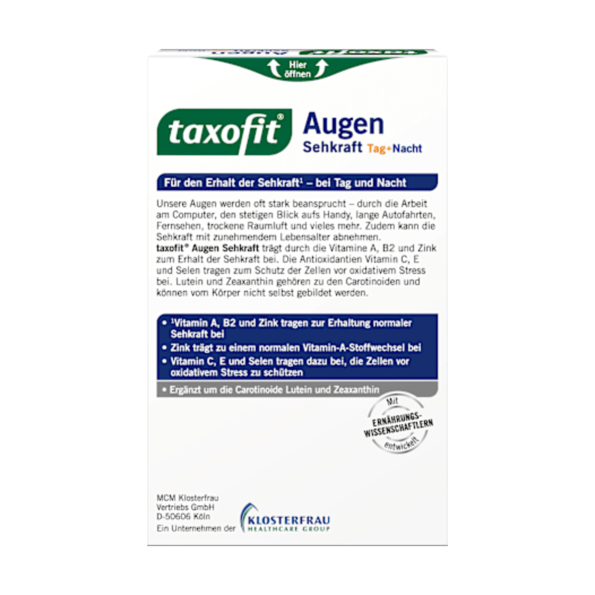 چشمان ما اغلب تحت فشار قابل توجهی هستند - از کار با کامپیوتر، نگاه مداوم به تلفنهایمان، سفرهای طولانی با ماشین، تماشای تلویزیون، هوای خشک داخل خانه و موارد دیگر. علاوه بر این، بینایی میتواند با افزایش سن کاهش یابد. تاکسوفیت آی ویژن با ویتامینهای A، B2 و روی به حفظ بینایی خوب کمک میکند، در حالی که آنتیاکسیدانها، ویتامینهای C، E و سلنیوم به محافظت از سلولها در برابر استرس اکسیداتیو کمک میکنند. لوتئین و زآگزانتین اضافه شده نیز کاروتنوئید هستند و نمیتوانند توسط خود بدن تولید شوند.