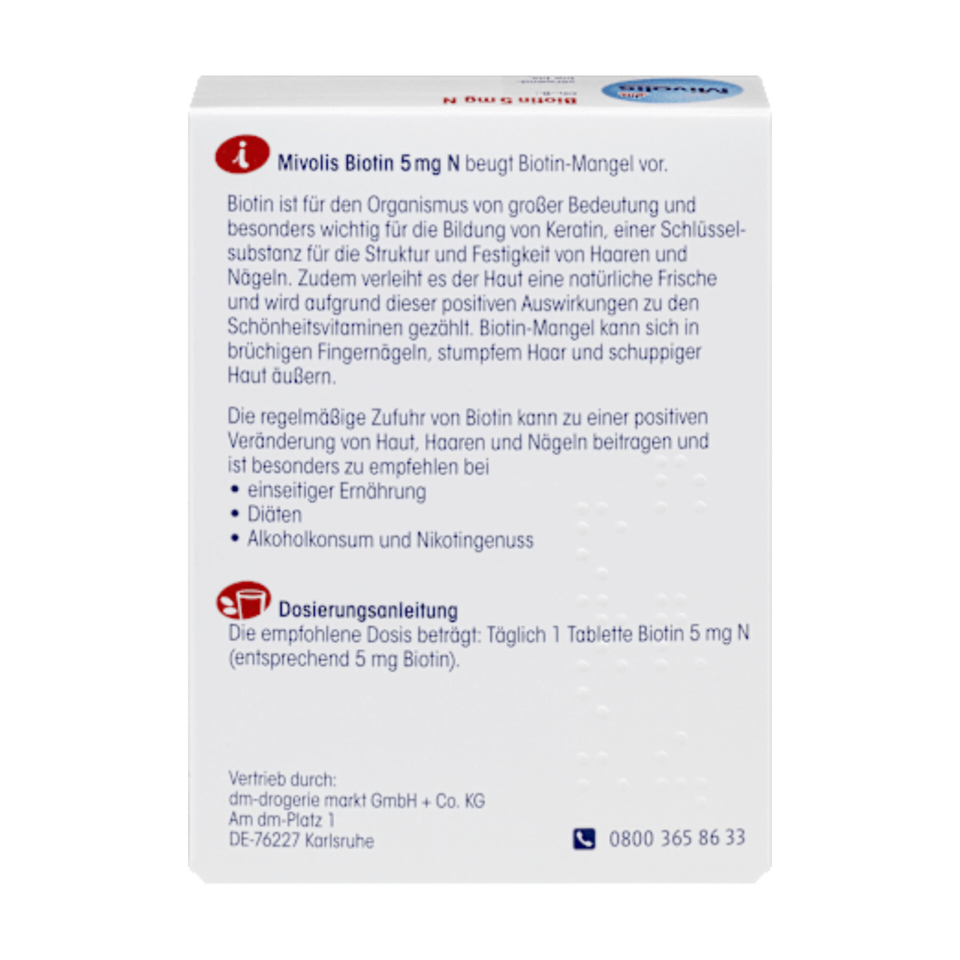 بیوتین میوولیس ۵ میلیگرم N از کمبود بیوتین جلوگیری میکند. بیوتین برای بدن بسیار مهم است و به ویژه برای تشکیل کراتین، مادهای کلیدی برای ساختار و استحکام مو و ناخن، بسیار مهم است. همچنین به پوست طراوت طبیعی میبخشد و به دلیل همین اثرات مثبت، یکی از ویتامینهای زیبایی محسوب میشود. کمبود بیوتین میتواند به صورت ناخنهای شکننده، موهای کدر و پوست پوسته پوسته ظاهر شود. مصرف منظم بیوتین میتواند به تغییرات مثبت در پوست، مو و ناخن کمک کند و به ویژه در موارد زیر توصیه میشود: رژیمهای غذایی نامتعادل، رژیمهای لاغری، مصرف الکل و مصرف نیکوتین.