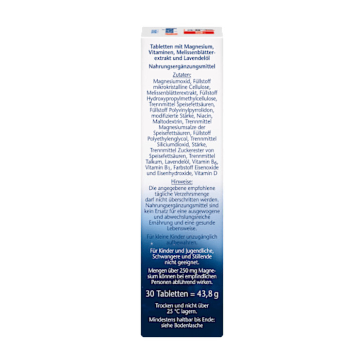 کپسولهای Doppelherz Magnesium 500 برای مصرف شبانه حاوی عصاره برگ بادرنجبویه و روغن اسطوخودوس هستند. این مکمل غذایی با دوز بالا همچنین حاوی ویتامین D و منیزیم است که از عملکرد طبیعی عضلات پشتیبانی میکنند. ویتامینهایی مانند B1، B6 و نیاسین به عملکرد طبیعی سیستم عصبی کمک میکنند. این کپسولها برای گیاهخواران مناسب هستند و همچنین فاقد لاکتوز و گلوتن میباشند.