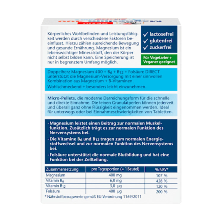 استیکهای فعال منیزیم دایرکت داپلهرتز، با ترکیبی از ویتامینهای ارزشمند B6، B12 و اسید فولیک، به عملکرد طبیعی قلب و عضلات کمک میکنند. این مکمل غذایی همچنین میتواند از متابولیسم طبیعی انرژی پشتیبانی کند. به لطف فرم پودری مناسب و بستهبندیهای کوچک، استیکهای دایرکت برای استفاده در حال حرکت ایدهآل هستند.