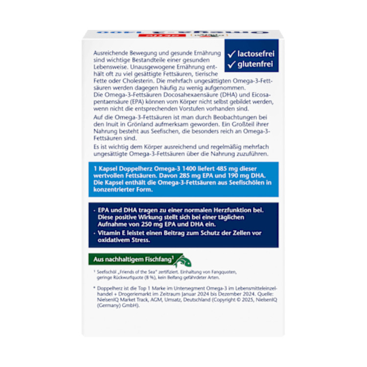 با کپسولهای Doppelherz active Omega-3 1400 که از روغن ماهی دریایی ساخته شدهاند، از قلب و سلولهای خود حمایت کنید. این کپسولها دوز بالایی از اسیدهای چرب امگا ۳ را ارائه میدهند که میتواند سهم قابل توجهی در عملکرد طبیعی قلب داشته باشد. این مکمل غذایی همچنین حاوی ویتامین E است که میتواند سلولهای شما را از استرس اکسیداتیو محافظت کند. این فرمول کاملاً عاری از رنگ، لاکتوز و گلوتن است و آن را برای بسیاری از رژیمهای غذایی مناسب میکند.