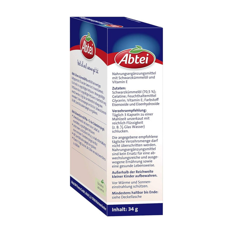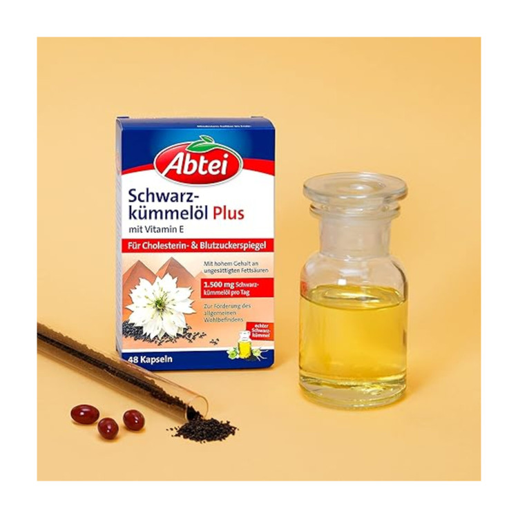 سلامت کلی را ارتقا میدهد: روغن زیره سیاه Abtei Plus حاوی روغن زیره سیاه و ویتامین E است.