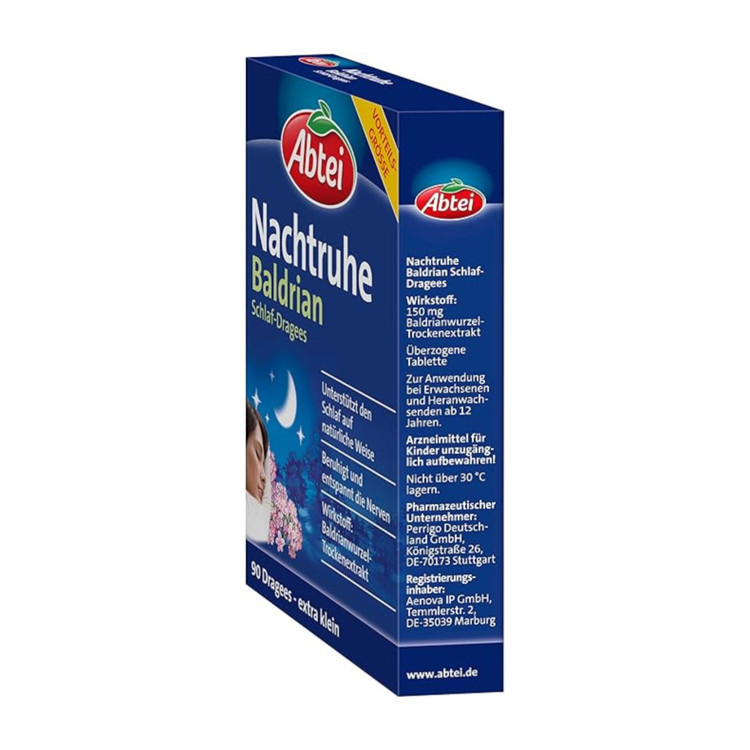 دراژههای خواب آور والرین Abtei Night rest N بدون گلوتن و ژلاتین هستند - اندازه دراژه دلپذیر است، مصرف آن آسان است - هیچ تداخلی شناخته نشده است